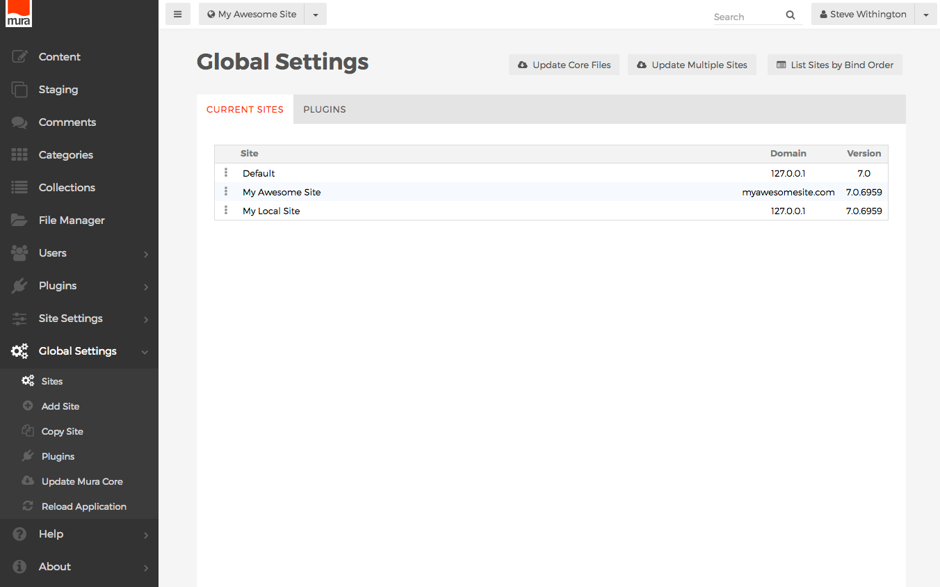 - From the back-end administration area of Mura, select Site Settings from the main navigation, then click Deploy Site Bundle.